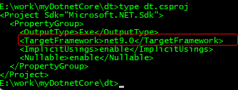 info: Setting property 'TargetFramework' to 'net9.0' for project 'dt (E:\work\myDotnetCore\dt\dt.csproj)'.