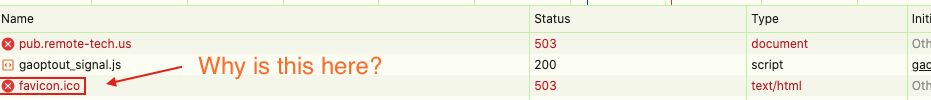 I’ve seen the missing favicon.ico many times in the past while inspecting some web page.